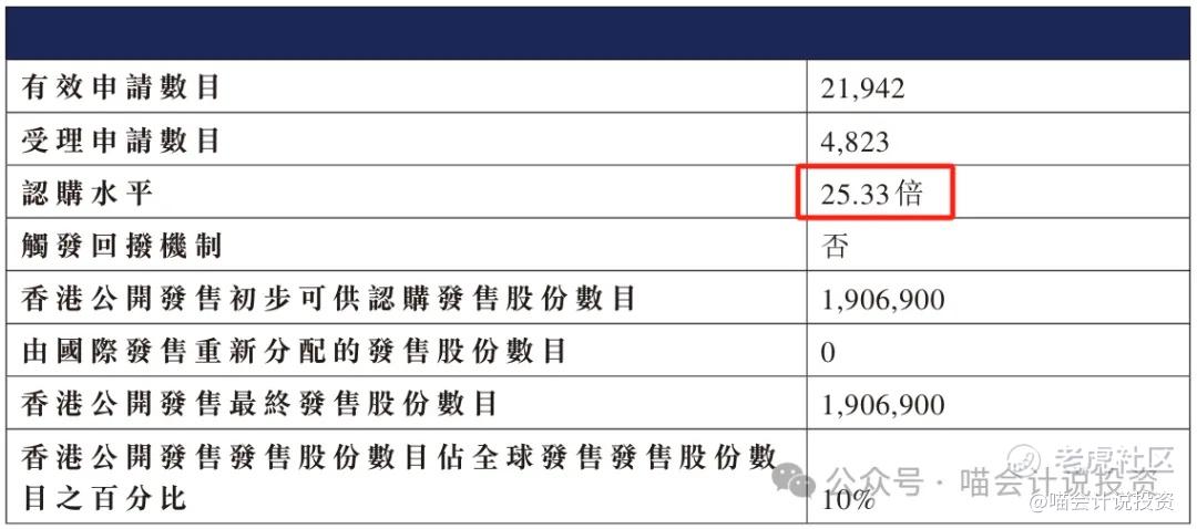 香港公开发售25.33倍/57亿,申购人数2.2万,猴子不会来这票。