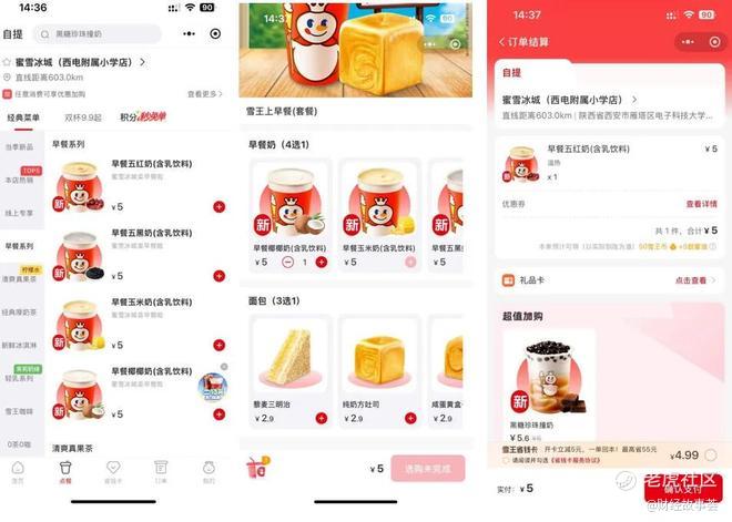 不止霸王茶姬,蜜雪冰城已在大连、西安、南宁、杭州等城市部分门店试点早餐。