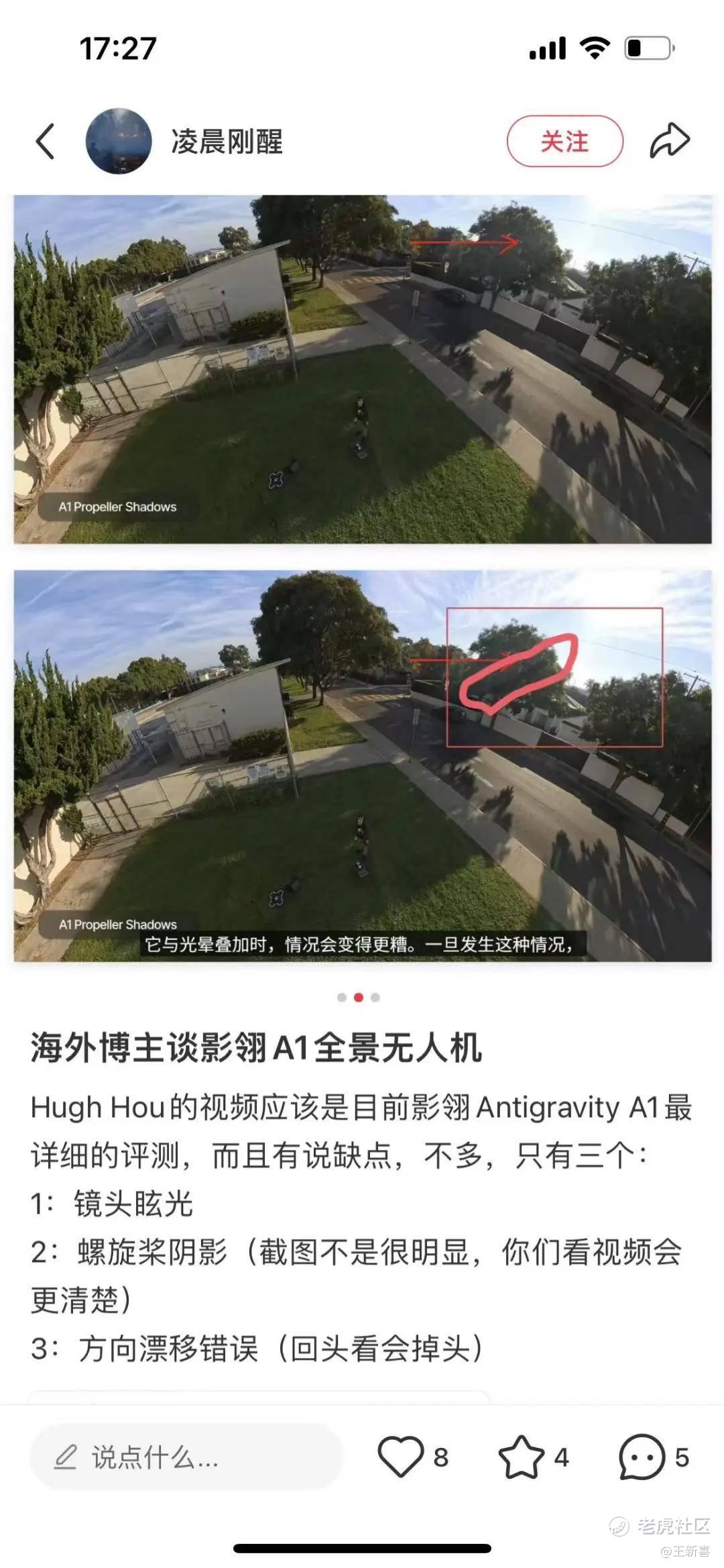 在小红书,有海外博主谈到,该产品缺点有三个:其一是镜头炫光,其二是螺旋桨阴影,其三是方向漂移错误。