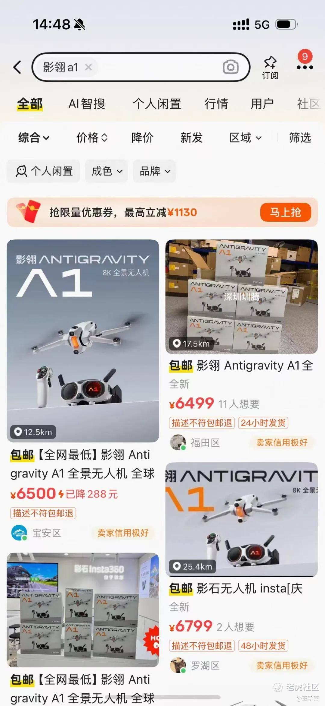 产品发布第二天,闲鱼出现甩货,A1直接全新的带包装的,便宜400到1000。