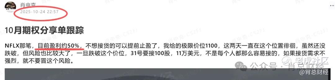 24号那天,当时盈利50%左右,建议不想接货的可以止盈。因为我记成31号到期,实际当天就是最后一天了,结果我自己没有止盈,被动接了11万美金的奈飞。。