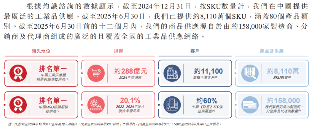 1、业务:依托京东集团在中国提供广泛的工业品供应,排名第一,规模是第二名的3倍,市占率4.1%。