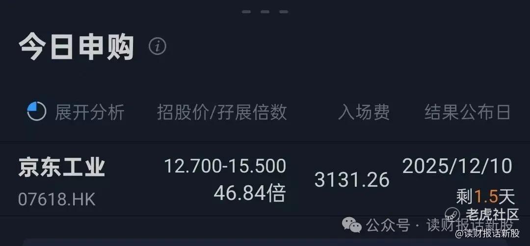 京东 $京东工业(07618)$ 不是属于投机炒作票,而是属于机构较为认可的新股,国配方面认购不错