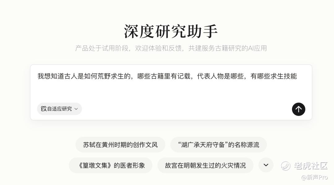 只需要问「深度研究助手」一句,「古代荒野求生的代表人物和故事」,几分钟后,一份严谨的学术报告就出炉了。