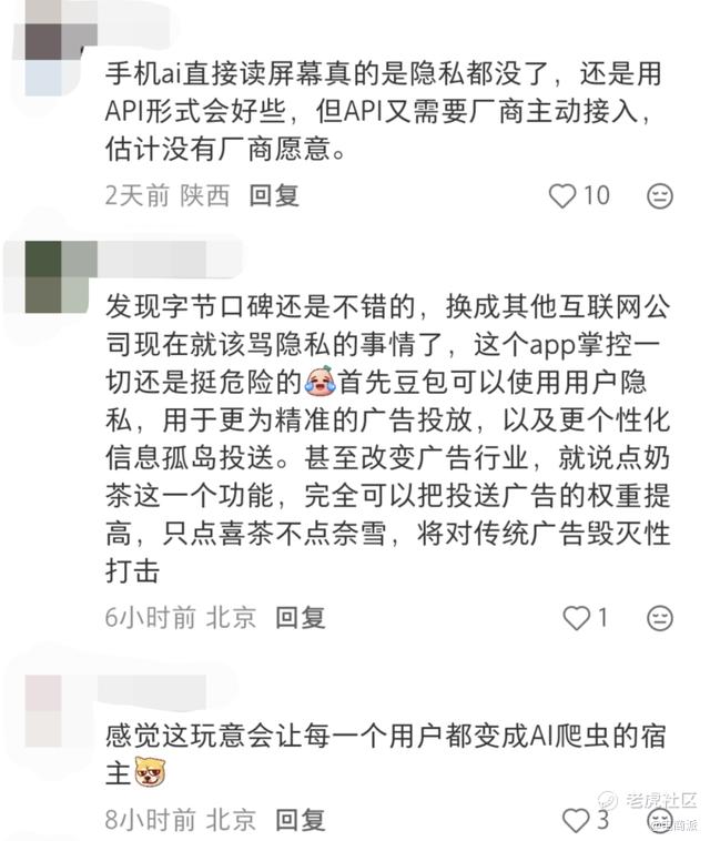 除了APP本身的防御,许多用户也对豆包读取屏幕信息,且能在多个应用间自由切换的操作方式深感不安。