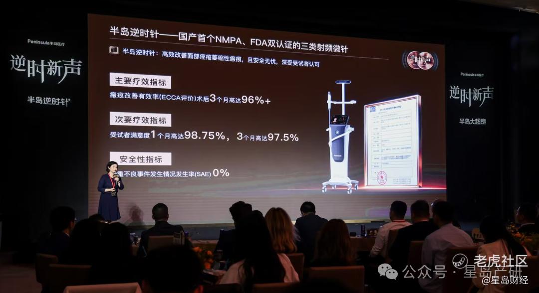 其中,“半岛大超炮”是国内首个获得“三类证”的超声皮肤治疗仪,“半岛逆时针”则是首个拥有NMPA与FDA双认证的国产三类射频皮肤治疗仪。