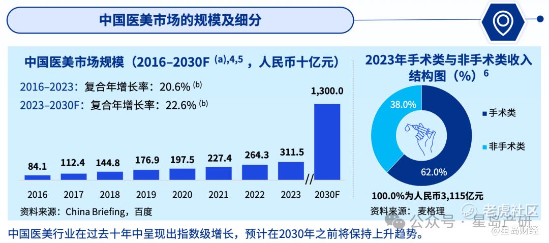 毕马威的报告指出,截至2023年中国医美行业的市场规模已达到3115亿元,预计2030年可增长至1.3万亿元,成为全球新兴市场。