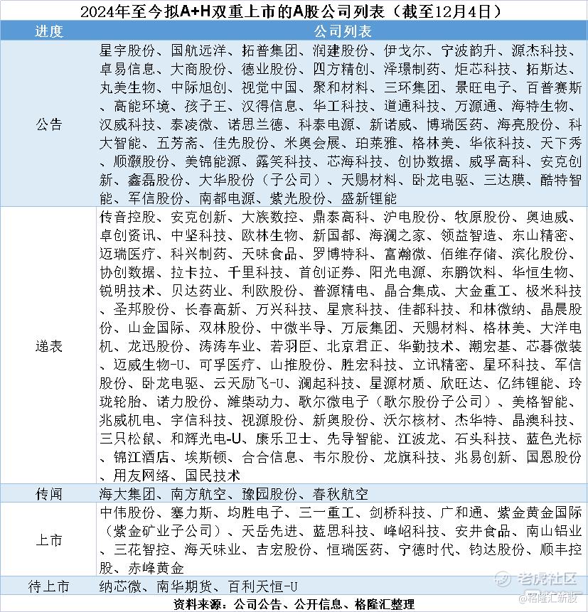 近期,又有多家A股公司迎来A+H双重上市的进展,相关表格见文末。