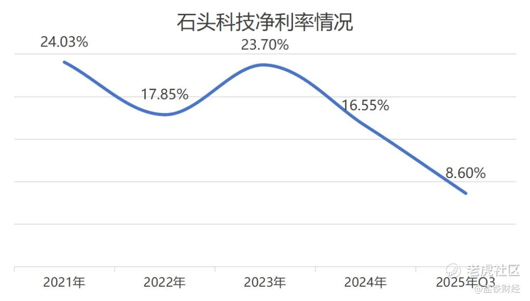 高企的销售费用直接侵蚀了利润空间,这一点从石头科技净利率的变化可见一斑。2023年,石头科技净利率为23.7%,2024年底已经跌到了16.55%,到2025年第三季度又降至8.6%。