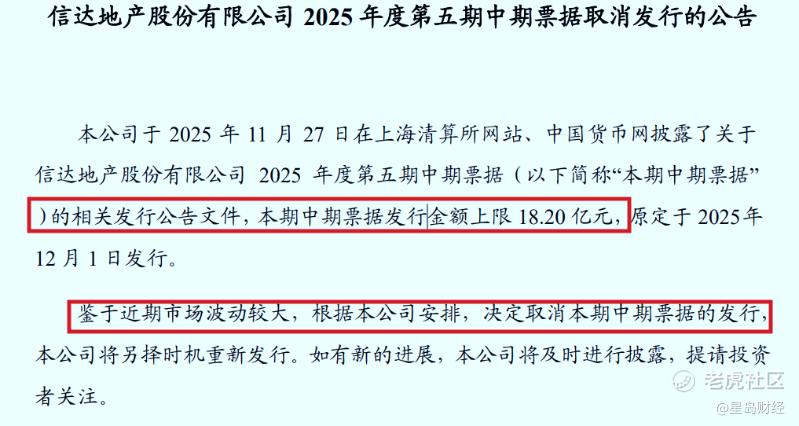 近日,信达地产股份有限公司发布公告,宣布取消原定于12月1日发行的中期票据,涉及18.2亿元募资额。对于取消发行的原因,公司表示系近期市场波动较大,后续将另择时机重启发行。
