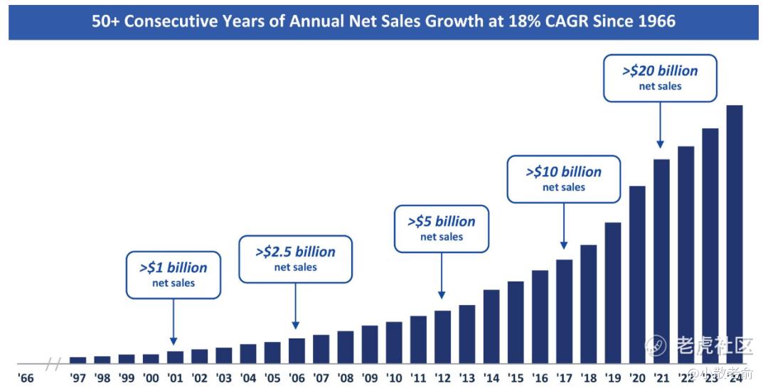 并且通过遍布全球的 69 个分销设施组成的庞大网络进行产品分销,这些设施的总仓储面积达 2900 万平方英尺,并拥有由超过 2000 辆 MedTrans 卡车组成的自有车队,使我们能够向 95% 的美国客户提供次日送达服务。我们的综合业务模式和以客户为中心的文化有助于降低成本并提升对利益相关者的价值。这是我们的可持续经常性收入基础的基础,公司自创立以来,净销售额每年均实现复合年增长率(“CAGR”)18% 的增长。