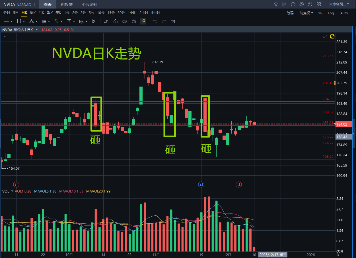 $英伟达(NVDA)$ NVDA 183.5附近强支撑,走势比较弱但是可能不好跌破,看消息和热度我有点偏看涨,股价位置也不算高位。195附近阻力超强,如果做多到这个位置我肯定就跑。184~195之间利润空间好像不是很大