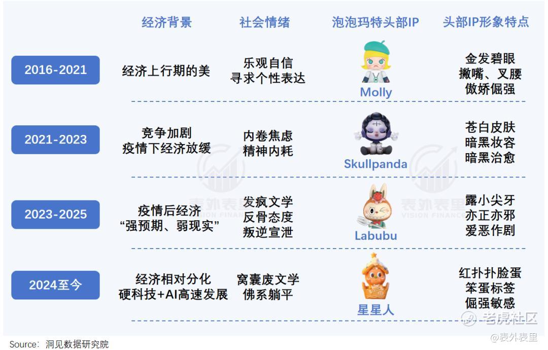 真正去理解情绪消费这门生意、了解泡泡玛特的爆款从何而来、如何接力,会发现其增长法则一直很清晰——在社会环境、人群思潮、经济背景的切换中,捕捉大众情绪变化,并发掘、培育不同内核的IP回应每一轮周期。