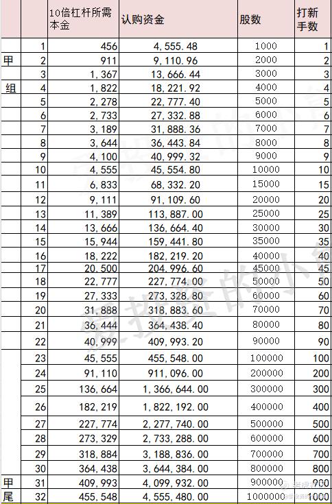 甲组的各档融资所需要的本金还有融资金额对应如下表: