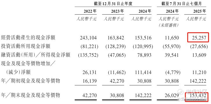 截至2025年7月31日,公司账上现金有人民币1.53亿元,经营活动现金流为0.25亿元。