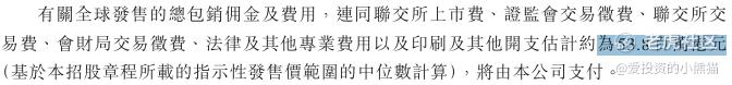 然后这个票招股书上按发售价的中位数4.305港元计算,公开的上市所有开支总额约为5380万港元,募资额约5.25亿港元,占比约10.25%,开支相比募资额算是一般化了。