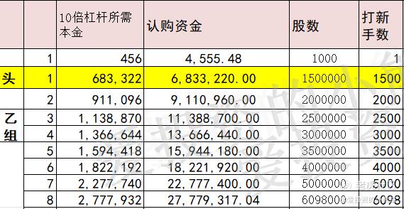 乙头需要认购资金684万,乙组的各档融资所需要的本金还有融资金额对应如下表: