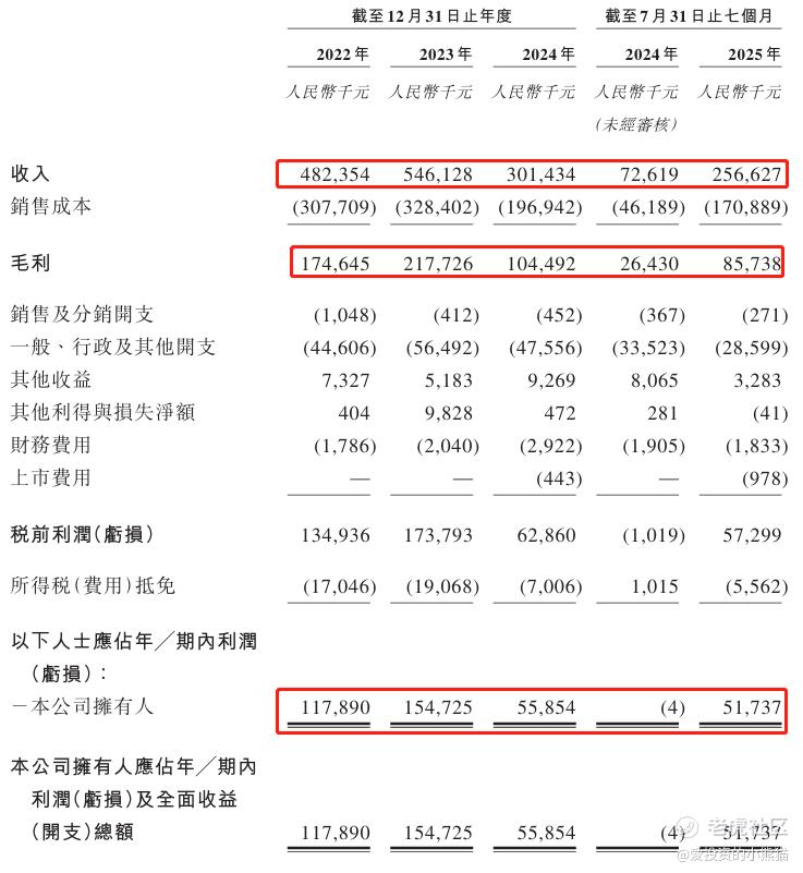截至2024年12月31日止3个年度、2024年及2025年前7个月: