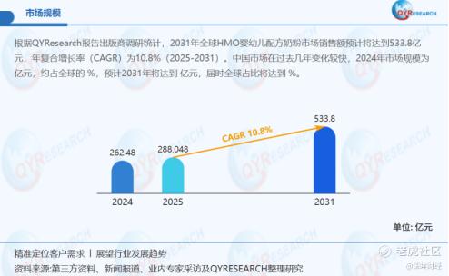 截至2025年3月,受访消费者对HMO的关注度达到了73.49%,添加HMO的种类和数量已经成为相关产品差异化的卖点之一。更直接推动了全球HMO市场规模在2024年达到约24.4亿元,并预计将以13.3%的年复合增长率高速扩张。