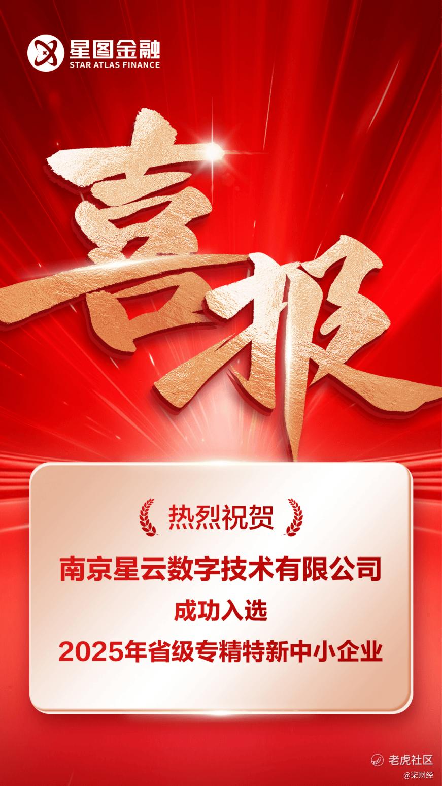 近日,江苏省工业和信息化厅公布2025年江苏省第二批专精特新中小企业名单,星图金融旗下星云数字凭借核心技术积累、产品创新实力成功入选。