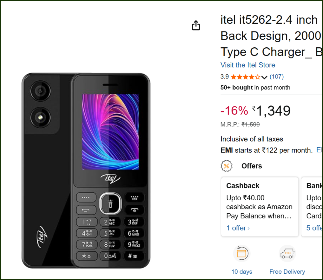 在印度市场销售的传音 itel手机,标称续航13天,售价折合人民币106元
