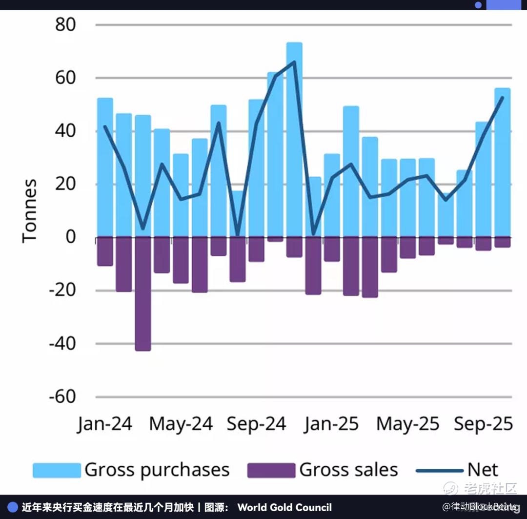 如果说白银的短缺是因为工业巨兽的吞噬,那么黄金的流失,则是因为一场国家级的「挤兑」。各国央行,那些曾经最坚定的美元持有者,现在正排在挤兑队伍的最前面。