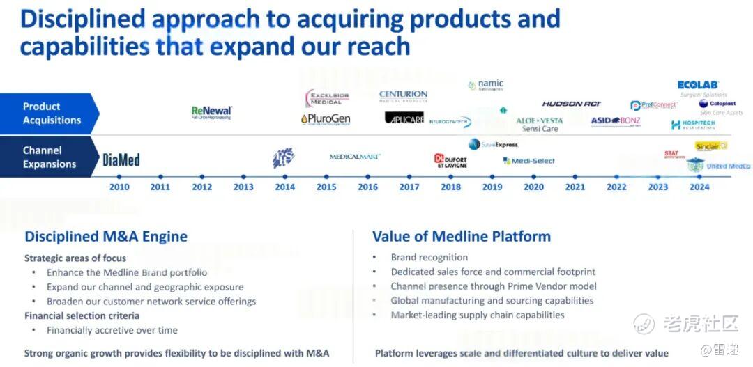 Medline是一家围绕“医疗耗材 + 供应链解决方案”的综合平台型供应商,制造和分销的产品包括伤口管理、皮肤管理、麻醉、手套、泌尿外科、失禁管理、造口管理、耐用医疗设备、防感染产品等。