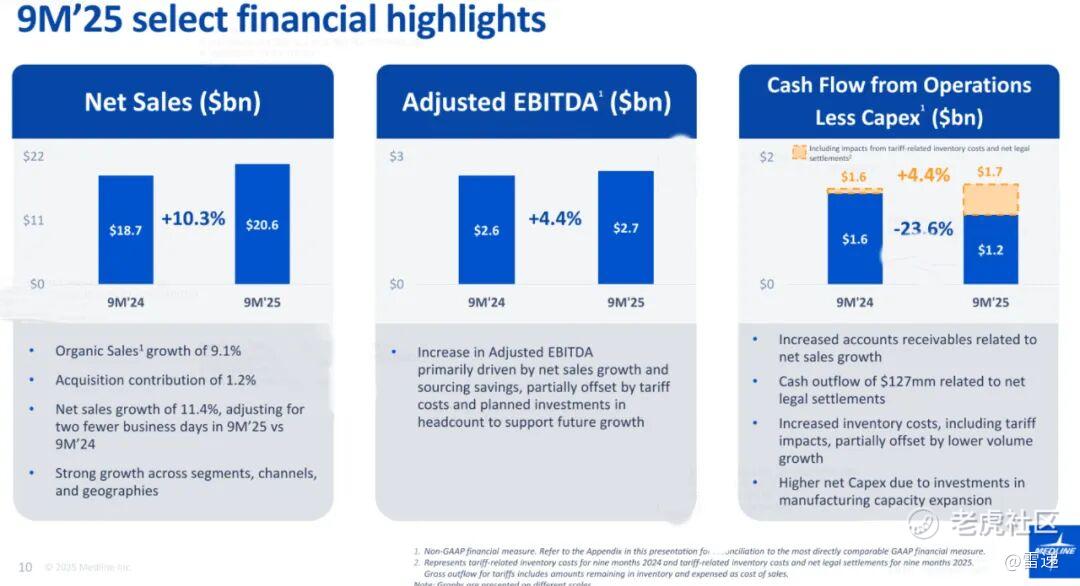 Medline在2025年前9个月Adjusted EBITDA为26.62亿美元,Adjusted EBITDA Margin为12.9%。