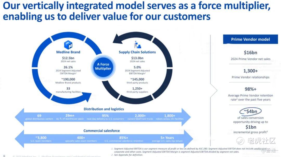 Medline在2022年、2023年、2024年Adjusted EBITDA分别为23.28亿美元、27.68亿美元、33.61亿美元;Adjusted EBITDA Margin分别为10.9%、11.9%、13.2%。