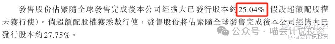 新发行占总股本的25.04%,比例挺高的,不过融资金额才1.253-1.480亿港元。