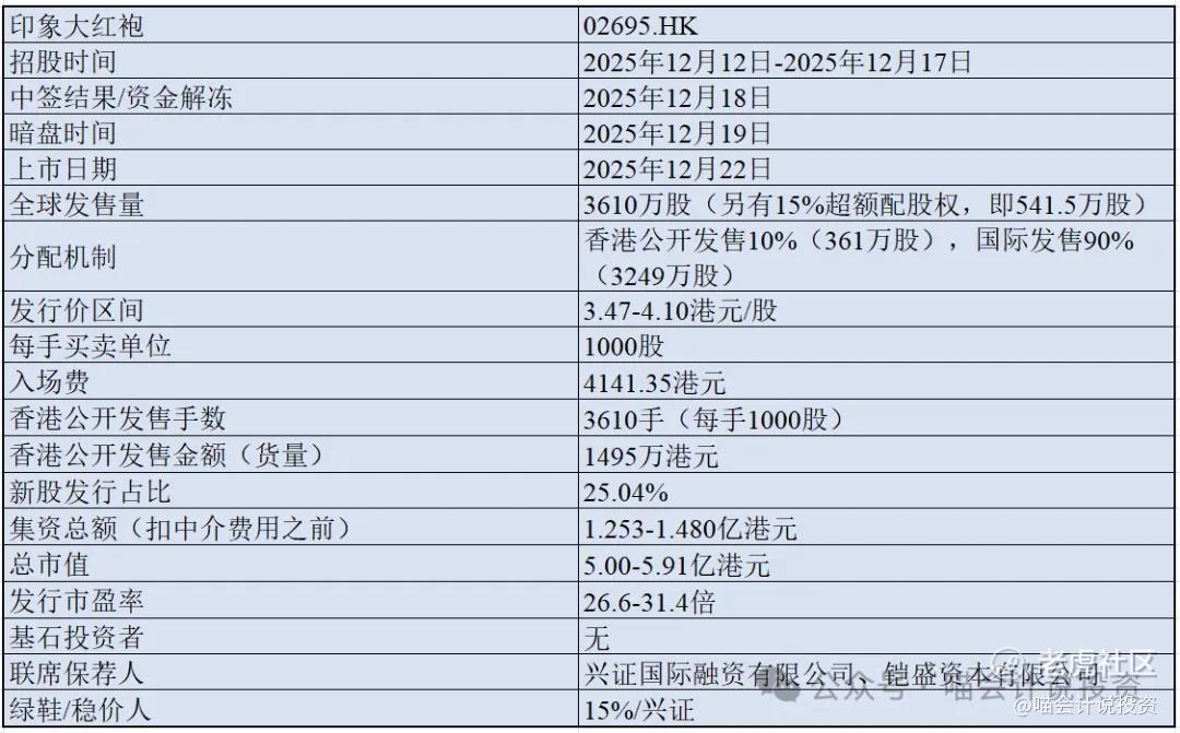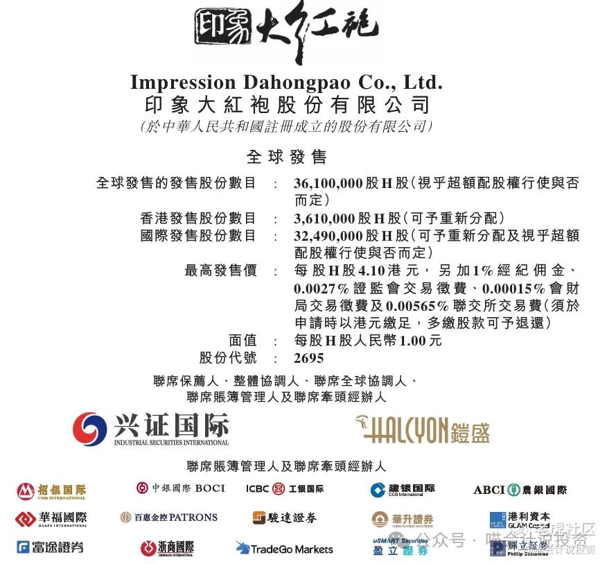 印象大红袍香港招股