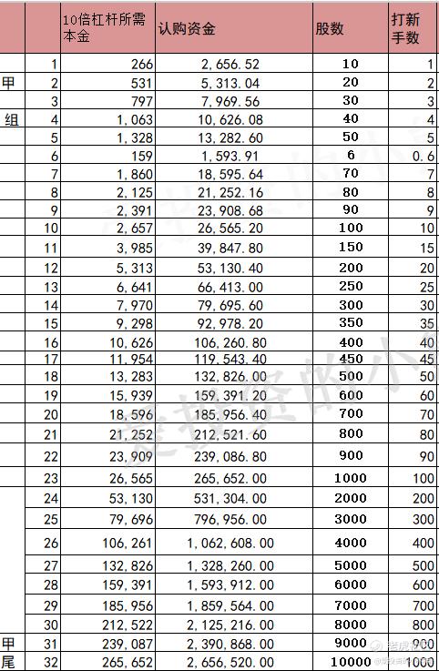 甲组的各档融资所需要的本金还有融资金额对应如下表: