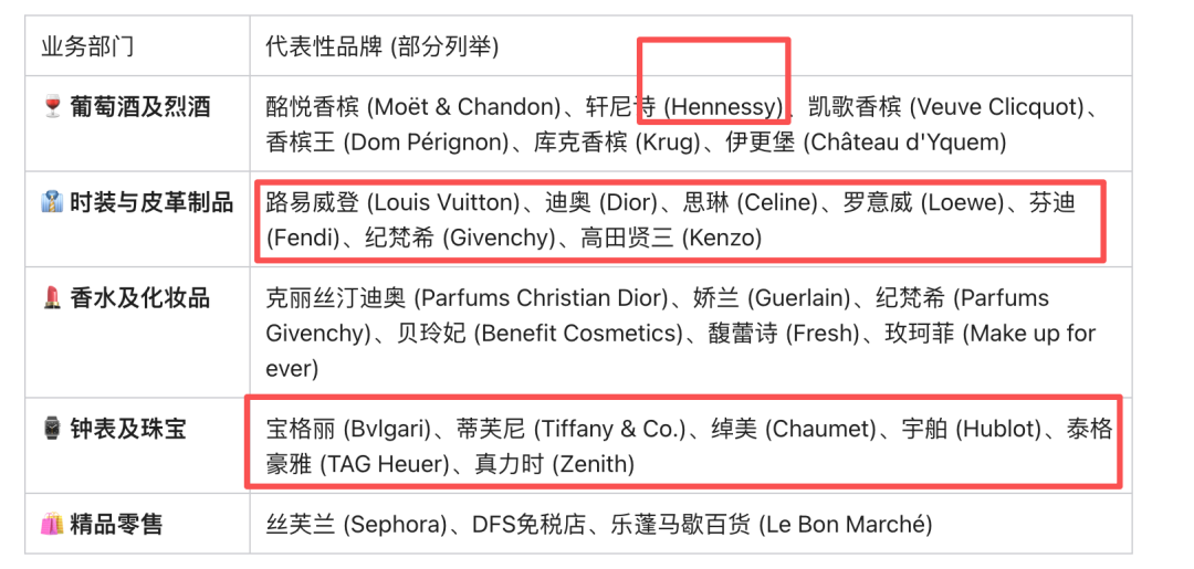 特别是,安踏现在是百货逻辑了,跟李宁完全不一样。安踏采取了类似奢侈品集团LVMH的“多品牌”战略。各位,不要以为LVMH只卖LV,看看LV现在有多少品牌: