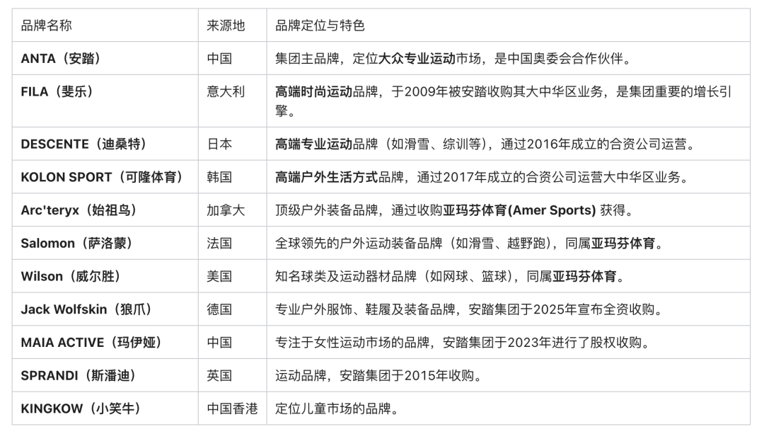 你再看看安踏,也是类似的策略。通过持续收购(如FILA、始祖鸟、迪桑特等),构建了一个覆盖大众到高端、专业运动到时尚运动的“品牌百货公司”。这种的优势是,即使一个品牌出了点问题,也不影响所有的。