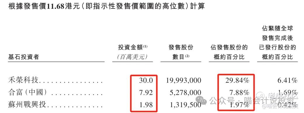 基石投资者:禾荣科技、合富中国、苏州市战兴投产业基金等