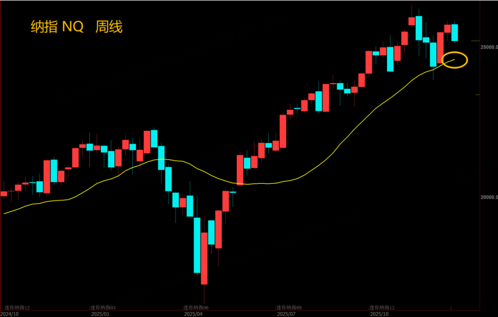 尽管在美国预测市场Kalshi和Polymarket上,沃什被特朗普提名为美联储主席的概率分别上升了17和24个百分点,但其总概率仍低于哈塞特。主要原因在于特朗普希望诉求一位能听从“他”降息意见的美联储主席,而沃什在过往的言论中表明他在通胀问题上持有鹰派的态度,这也是市场最担忧的一点,也表现在股指的调整上。不过人选要到明年1月才最终确定,在没有实质证据之前,市场交易和波动也都相对清淡,因此并不认为股指有很大的调整幅度。不过从风险预警角度看,我们还是需要做好防范措施,当前纳指仍以20周均线作为多空分水岭,点位大概在24600附近,支撑力度强,则就看明年美联储新主席人选确定后的再确定新方向了。