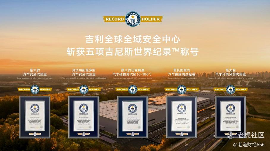 12月12日,吉利全球全域安全中心正式揭幕,一下子拿下“全球最大的汽车安全试验室”、“全球最长的室内汽车碰撞测试跑道”、“全球最大的汽车环境风洞试验室”、“全球最大的任意角度汽车碰撞测试区(0-180°)”、“全球测试功能最多的汽车安全试验室”了五个吉尼斯世界纪录称号。这个占地大约45000平方米的安全中心,是按照全球最高的安全标准建设的,能够进行各种类型的汽车安全测试,从传统的被动安全测试到主动安全、新能源安全等多个领域。 $吉利汽车(00175)$
