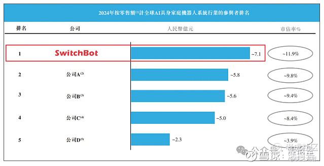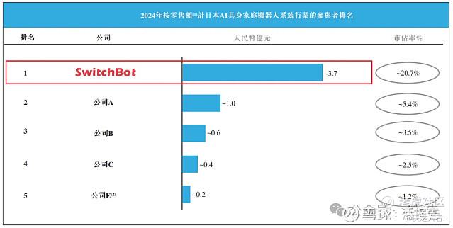 在日本市场,公司于2022年至2024年期间以零售额计算,在AI具身家庭机器人系统行业中排名第一,公司的手指机器人、门锁机器人及窗帘机器人于2022年至2024年期间在日本市场中均排名第一。