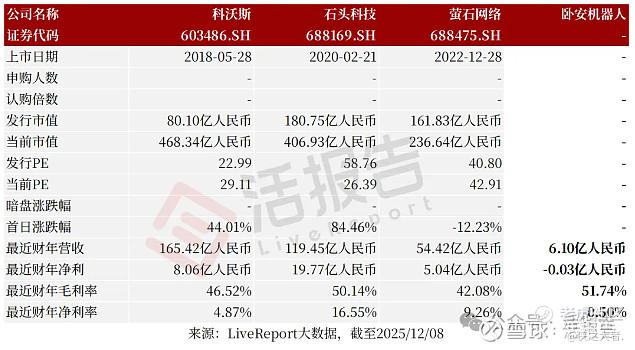 同行业IPO可比公司:科沃斯、石头科技、萤石网络。