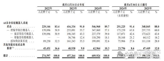 公司的收入主要来自AI具身家庭机器人系统产品,重大部分来自增强型执行机器人(含门锁机器人、窗帘机器人等灵活型技巧机器人及多功能家用机器人等增强型移动机器人)与感知与决策系统(含智能中枢、智能传感器、智能摄像头等),两者构成收入核心;其他智能家庭产品与服务(如智能照明设备、迷你插头等补充性产品)及相关配件获得的收入比例较小。