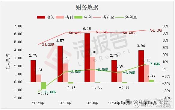 公司是一家全球AI具身家庭机器人系统提供商,2024年收入6.10亿元人民币,净亏损0.03亿元,同比收窄81.25%,毛利率51.74%;2025年上半年收入3.96亿元,同比增长四成,净利润0.28亿元,同比2024年上半年扭亏为盈,且增长三倍,毛利率54.19%。