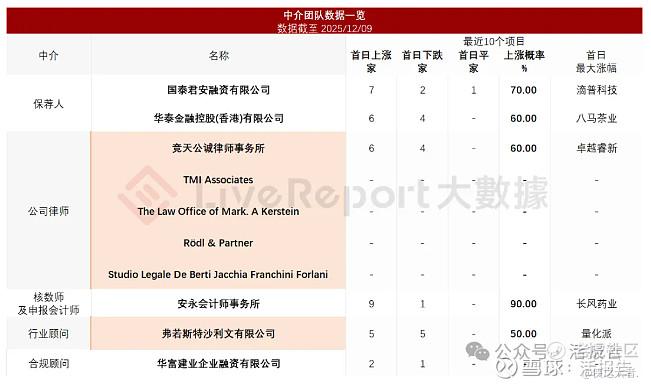 据**大数据统计,卧安机器人中介团队共计10家,其中保荐人2家,近10家保荐项目数据表现普通;公司律师共计5家,综合项目数据表现有待加强。整体而言中介团队历史数据表现缺乏亮点。