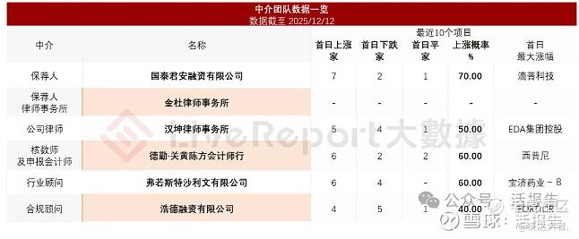 据**大数据统计,主线科技中介团队共计6家,其中保荐人1家,近10家保荐项目数据表现尚可;公司律师共计1家,综合项目数据表现有待加强。整体而言中介团队历史数据表现有待提升。