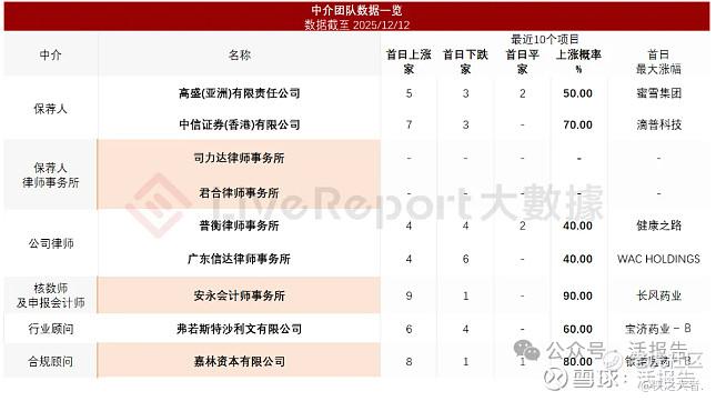 据**大数据统计,丸美生物中介团队共计9家,其中保荐人2家,近10家保荐项目数据表现普通;公司律师共计2家,综合项目数据表现不理想。整体而言中介团队历史数据表现中规中矩。