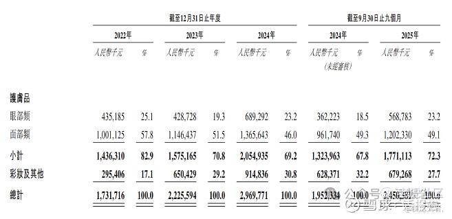 公司的收入重大部分来自丸美品牌的护肤产品(以眼部护理和面部护理产品为核心,2024年该品牌收入占总营收69.2%,眼部与面部类产品合计占比69.2%)及恋火品牌的底妆等彩妆产品(2024年占比30.5%);其他品牌产品(如春纪)及少量配套业务获得的收入比例较小,2024年占比仅0.3%。
