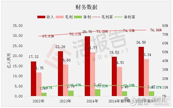 收入分别约为人民币17.32亿、22.26亿、29.70亿、19.52亿、24.50亿,2025年前9月同比+25.51%;