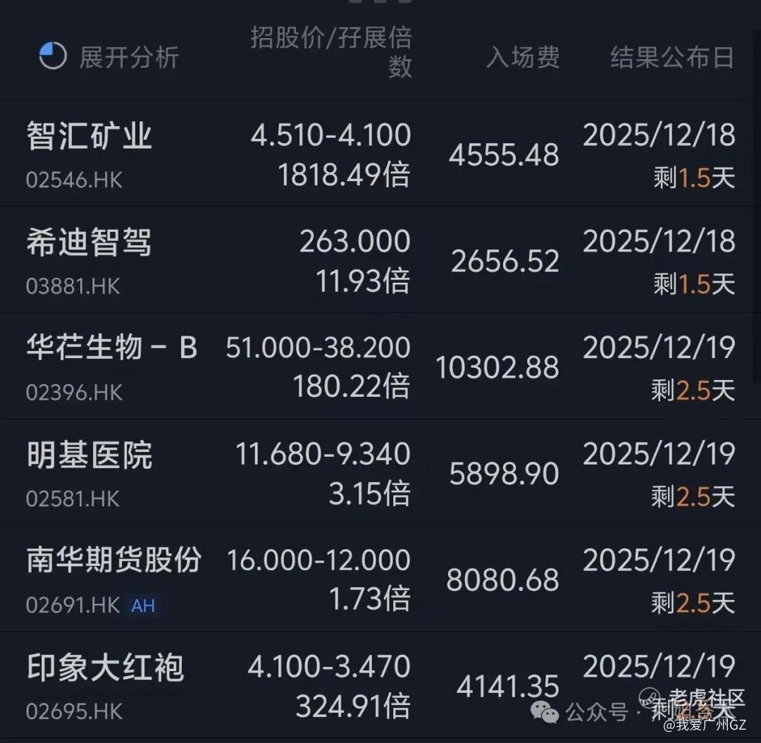 估计最后矿业孖展上4000倍没问题,大红袍上1000倍有机会,华芢生物500倍不到。