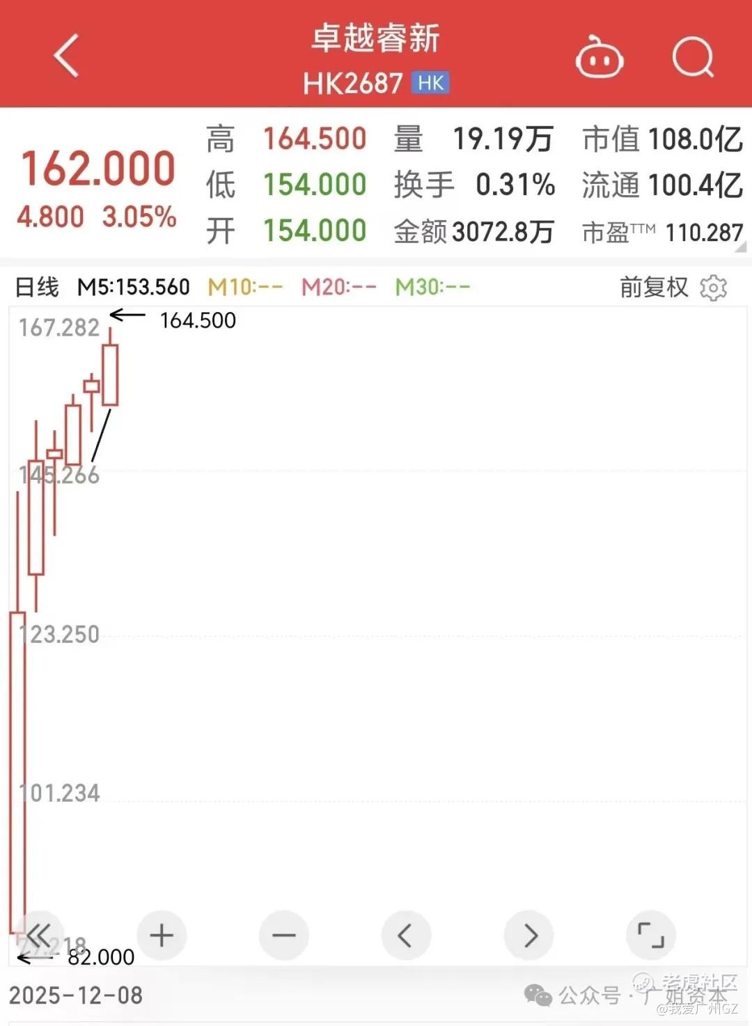 眼睁睁的看着卓越睿新拉上160,属实有点小惆怅,虽然预判了主力的所有预判,但也只能感慨一句:投资没有后悔药,当年没敢下手,现在只能当看客