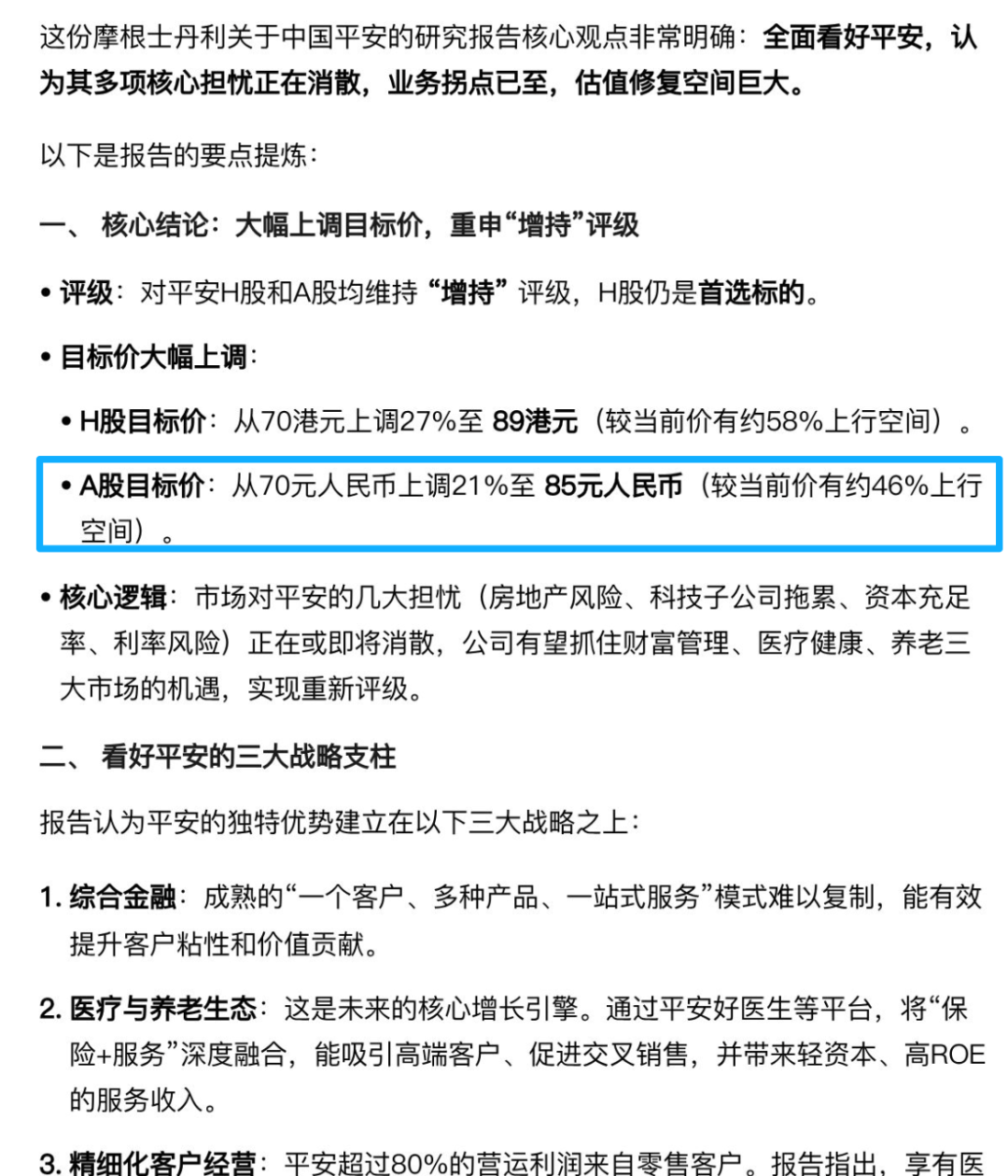 至于大摩为什么看多中国平安,上面我截图了一些要点,更多的在这里: