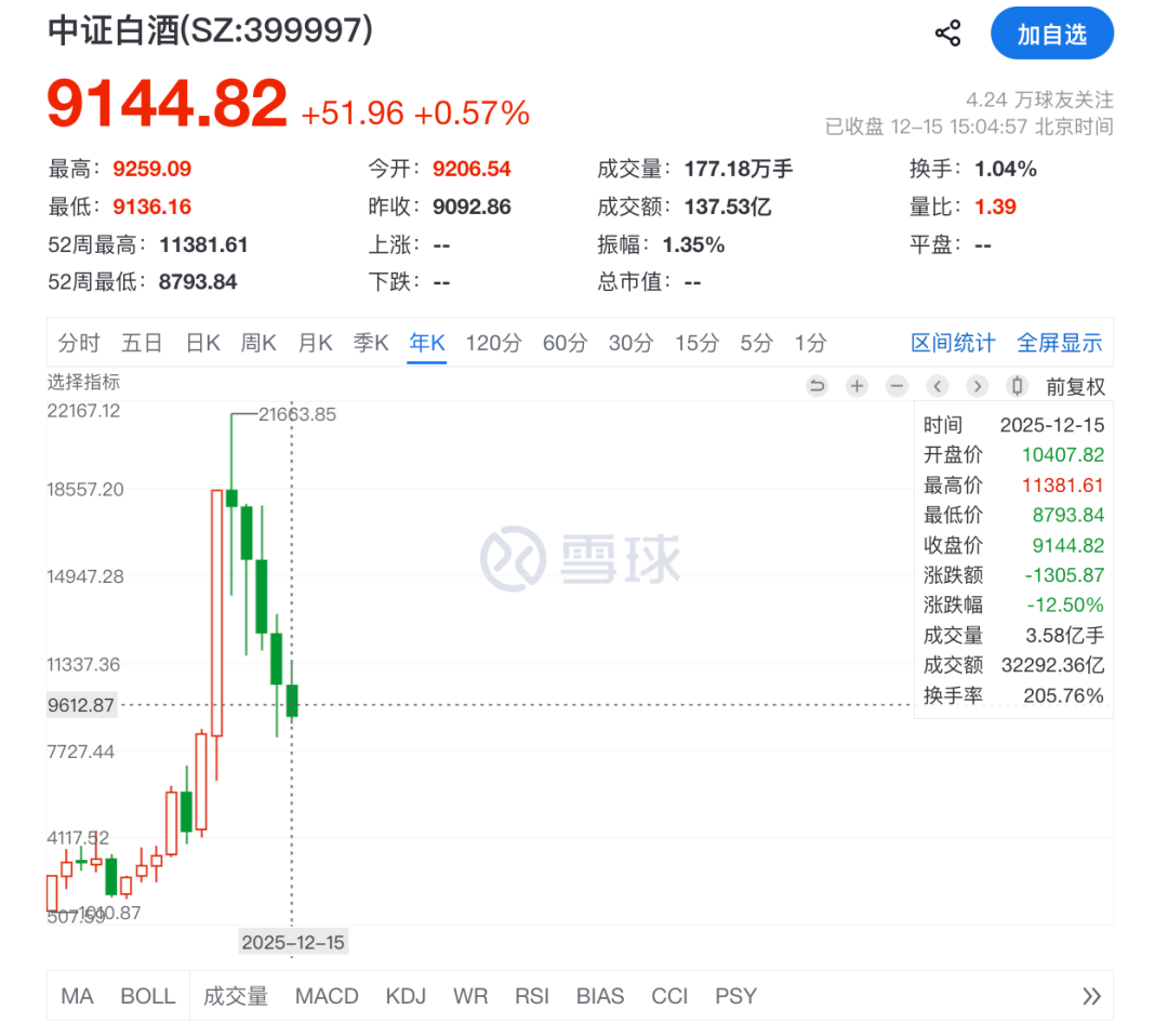 你再看其他的一些煤炭、白酒等乱七八糟的老登,今年也不咋地。特别是中证白酒,脸都没了: